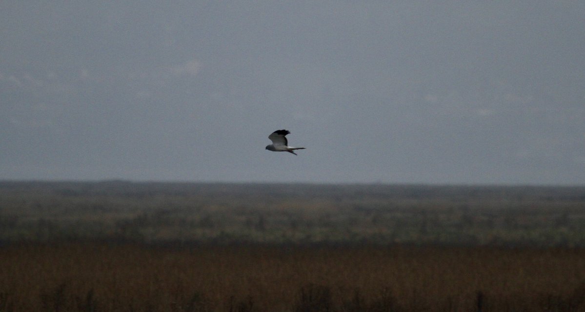 Male hen harrier flying over the marshes – by Findlay