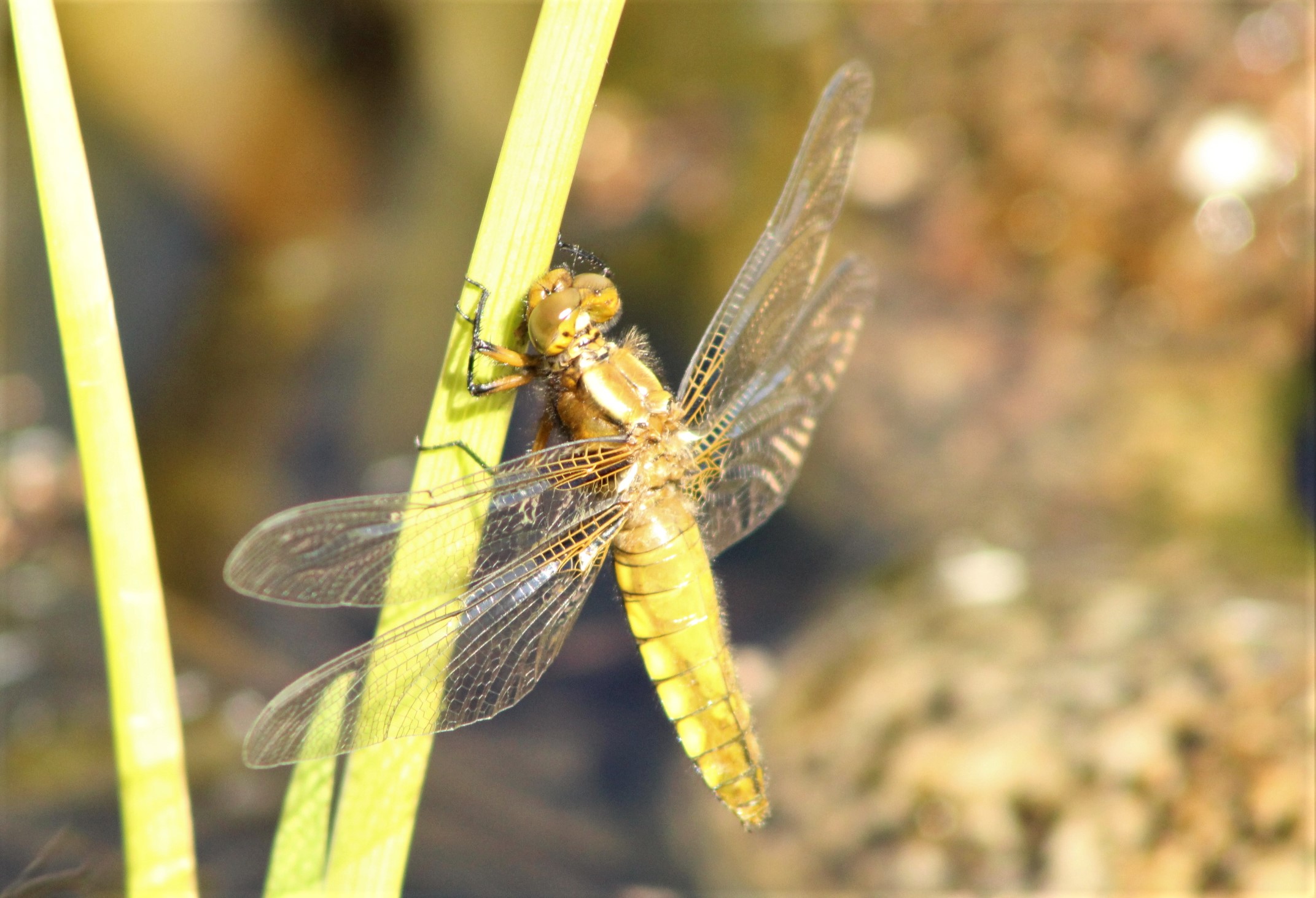 Broad bodied chaser emerges from our pond